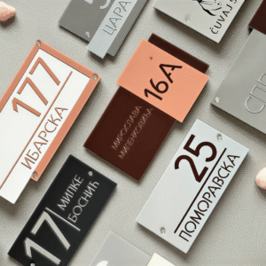 Izrađeni sa fokusom na moderan i elegantan dizajn, naši kućni brojevi, pločice za vrata i obaveštajni znakovi nude raznovrsne opcije po obliku, boji i materijalu. Idealni su za osveženje i oplemenjivanje svakog enterijera i eksterijera.